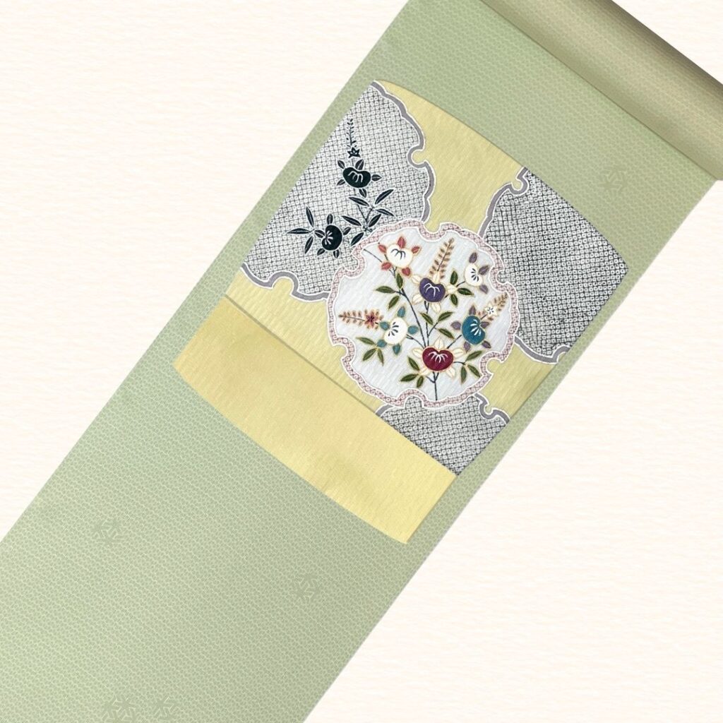 2026年4月16日 / 最終更新日時 : 2026年4月16日 いと善 カジュアル着物コーディネート 夏着物コーディネート ●北斎模様小紋●京友禅雪輪模様名古屋帯●帯締め 平田組みひも(江戸)●帯揚げ 絽ちりめん無地ペールカラー同士の組み合わせ グリーンとクリームは好相性です。帯揚げは帯の雪輪の紫の要素を取り入れました。 Follow me! FacebookXBluesky