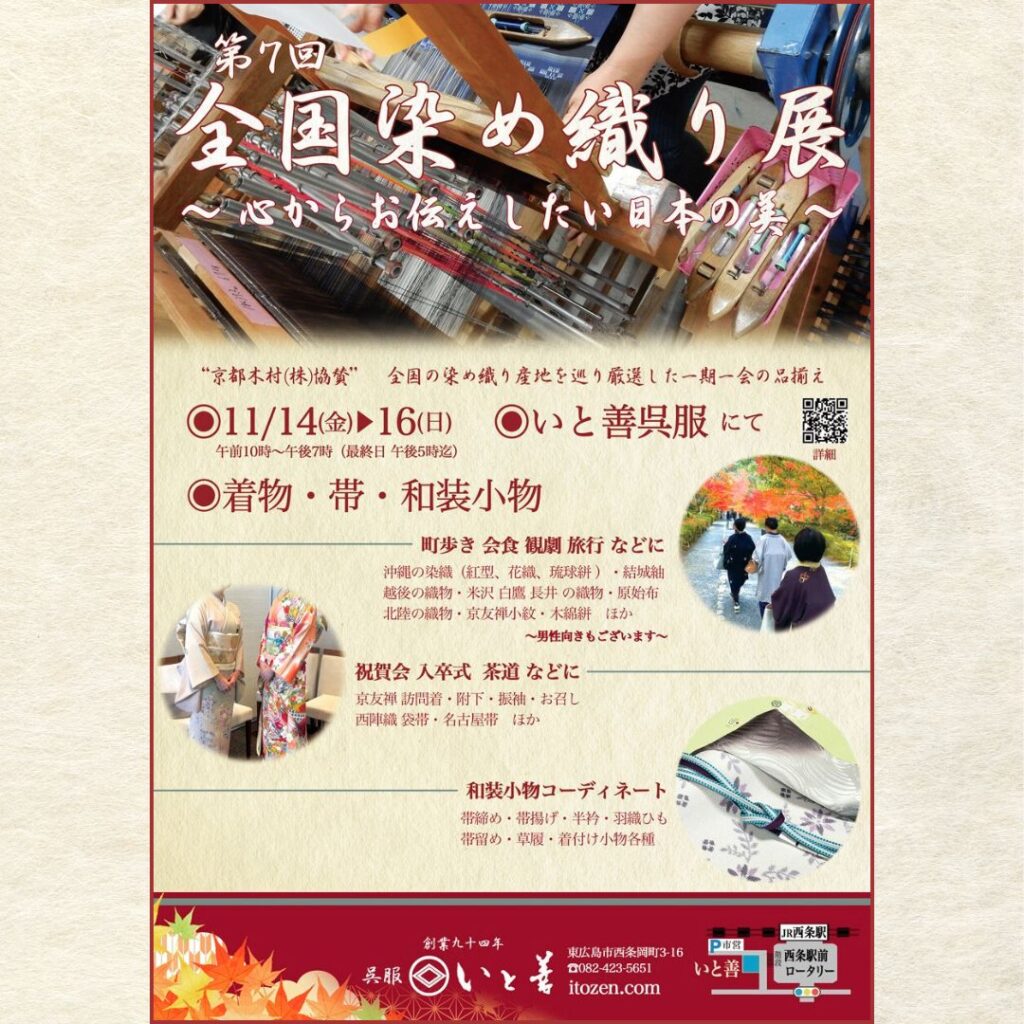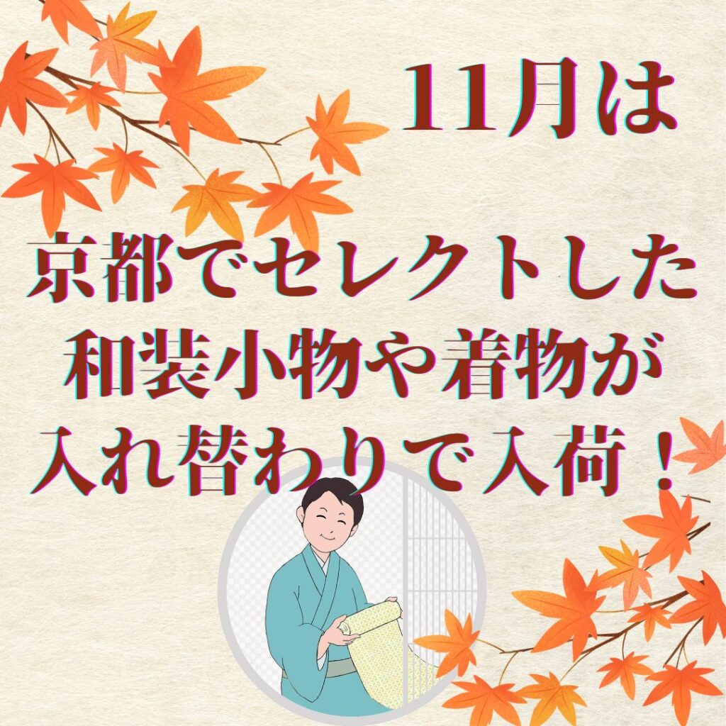 11月はじめに京都呉服産地へ仕入れに行って参りました。11/14〜16「全国染め織り展」ほか、1ヶ月を通して新鮮な品揃えとなります!