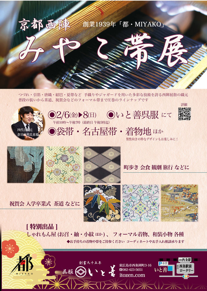 普段の装いから茶道、祝賀会などのフォーマル帯まで圧巻のラインナップです